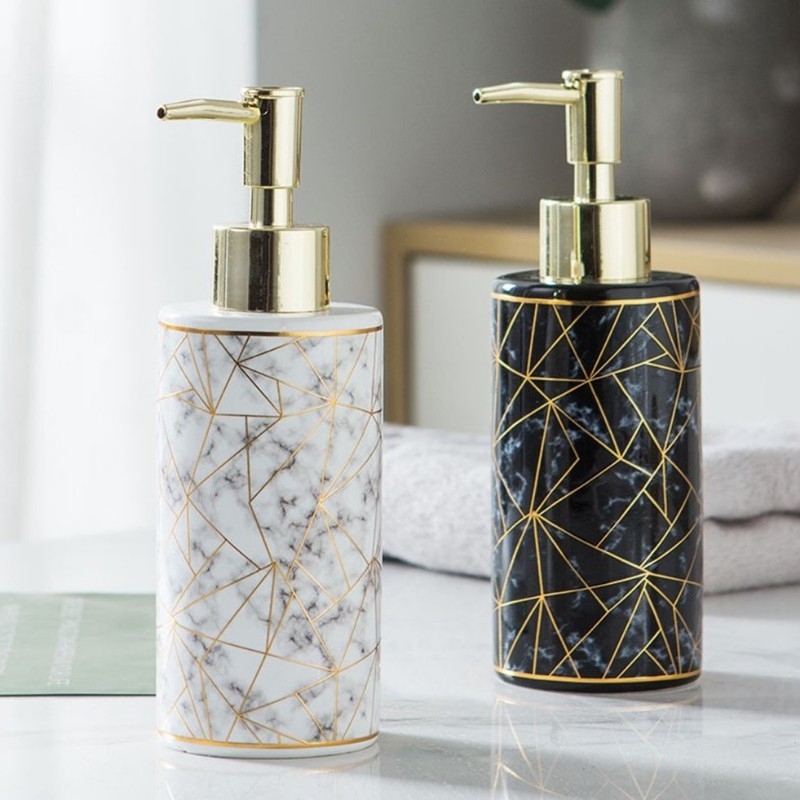 Chai chiết vân đá mosaic chất liệu sứ men màu cao cấp, có vòi chiết và dây dẫn dễ sử dụng