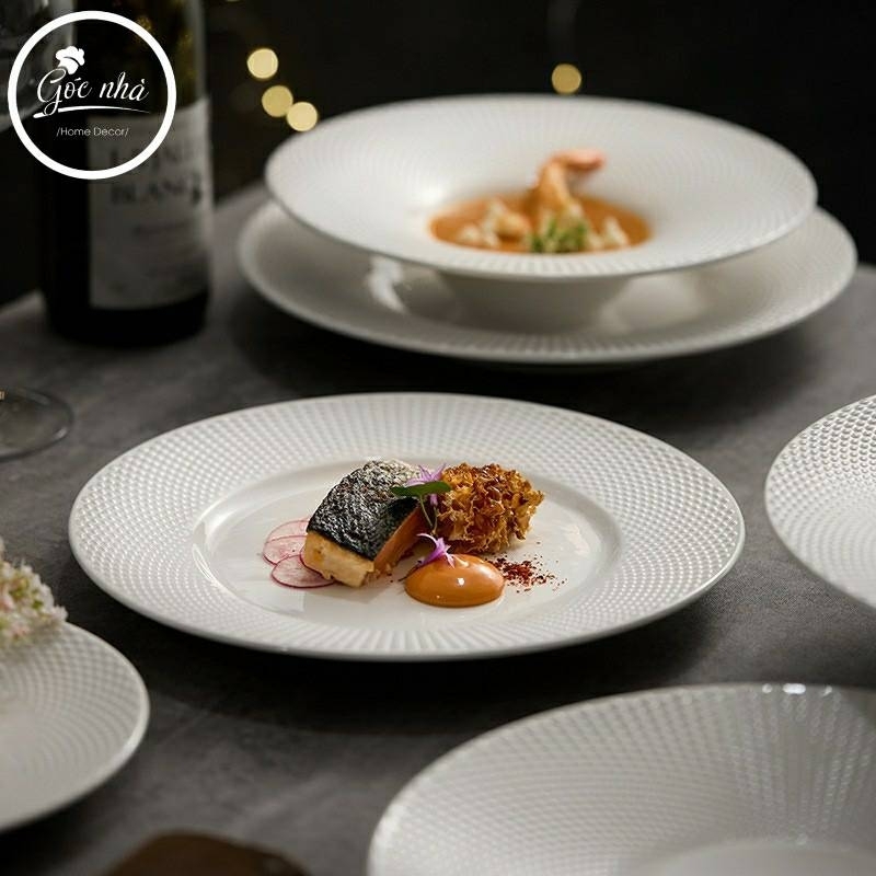 Bộ sản phẩm gồm ba kiểu dáng: dĩa phẳng dùng cho món chính, dĩa lõm cho món salad và dĩa sâu lòng dành cho soup hoặc pasta, phù hợp với nhiều phong cách trình bày món ăn từ thường nhật đến fine-dining. Đường kính rộng cùng cấu trúc lòng dĩa hợp lý giúp món ăn được nổi bật và trình bày đẹp mắt hơn bao giờ hết.