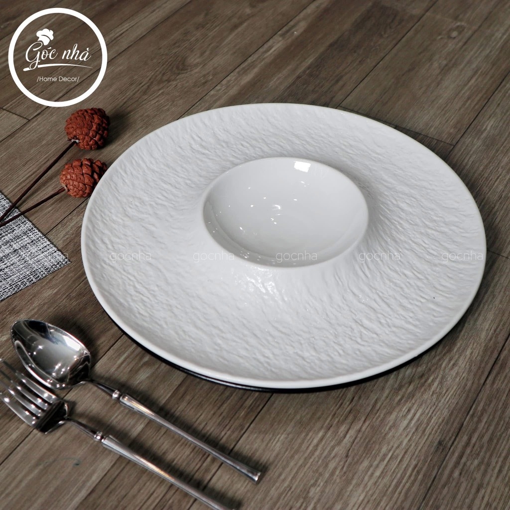 Với lòng sâu rộng, dĩa thích hợp để đựng soup, pasta, risotto hay các món có nước sốt, giúp món ăn được trình bày tinh tế, gọn gàng và giữ nhiệt lâu hơn. Vành dĩa bo tròn nhẹ, tạo khung nền lý tưởng để món ăn trở thành trung tâm thu hút mọi ánh nhìn.