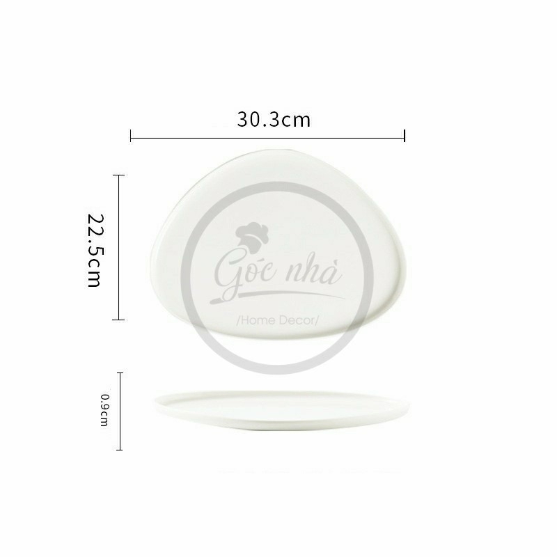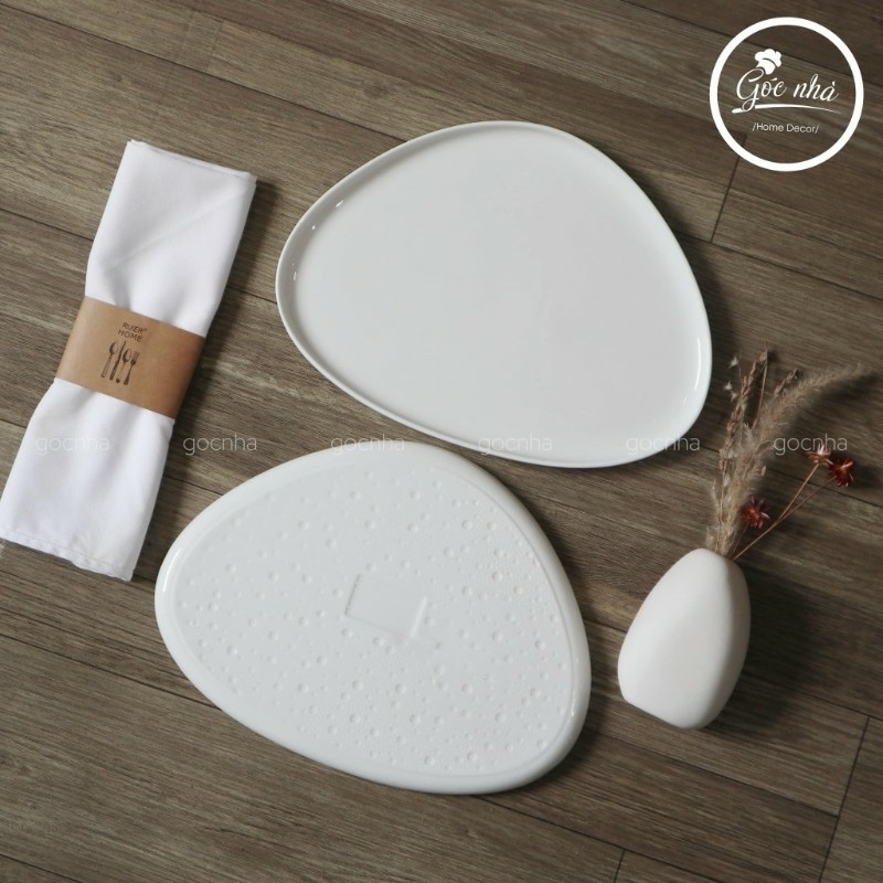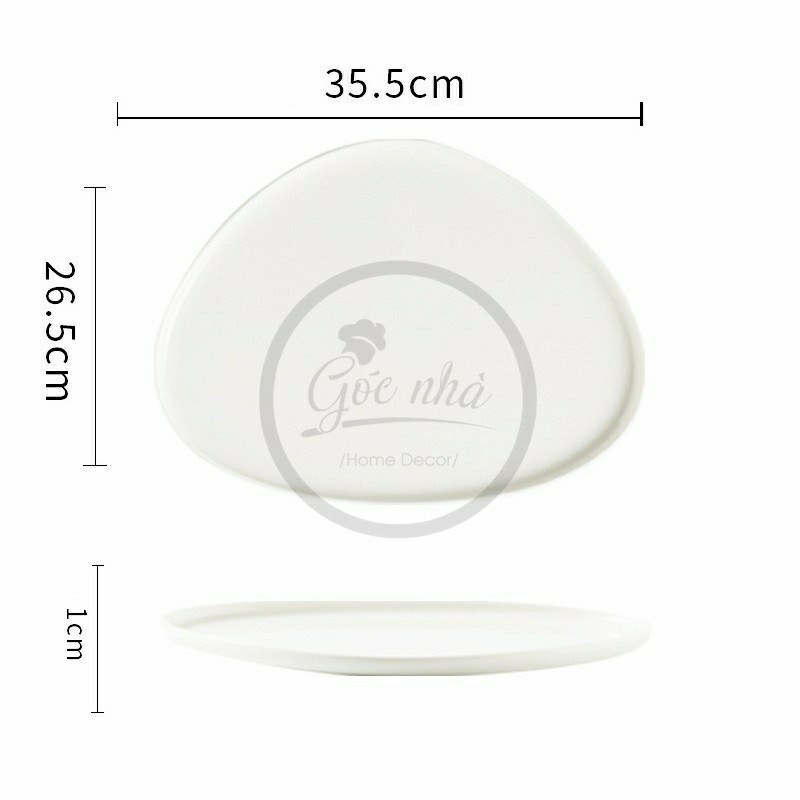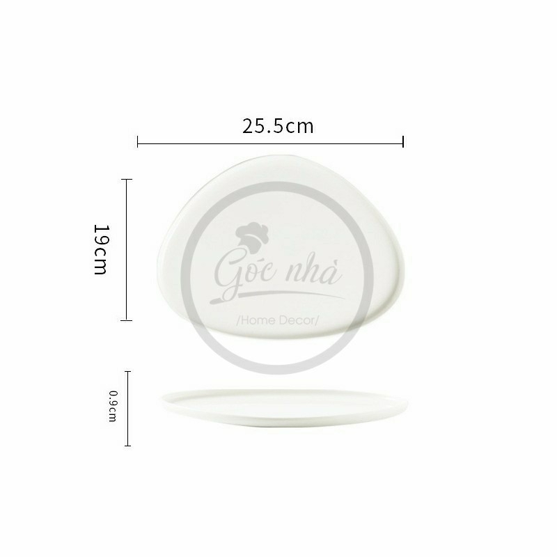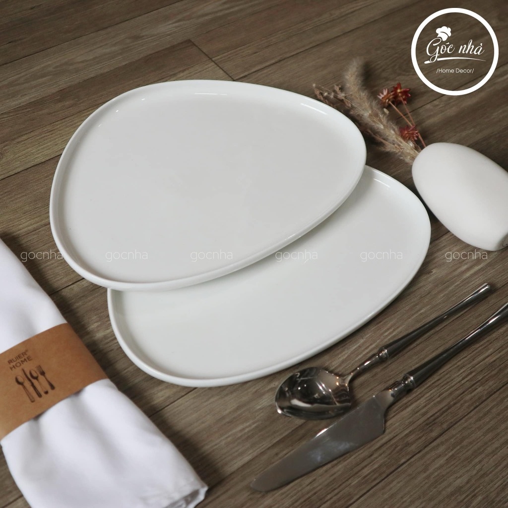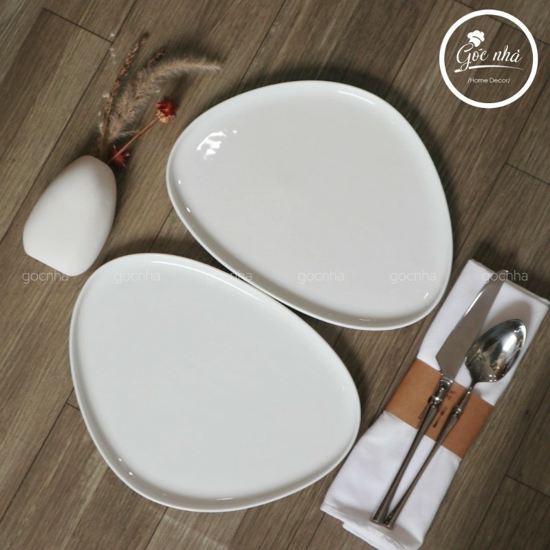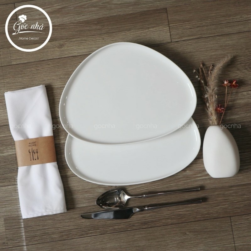 Dĩa được làm từ sứ trắng cao cấp, bề mặt tráng men mịn, sáng bóng và dễ lau rửa. Tông trắng trung tính dễ phối hợp với mọi kiểu bàn tiệc, từ casual đến sang trọng, từ tiệc Âu hiện đại đến món ăn Việt thân quen. Hình dáng dĩa cho phép bày biện món chính, món khai vị hay món tráng miệng một cách độc đáo, đồng thời tạo khung nền lý tưởng để thỏa sức sáng tạo trong cách trình bày.