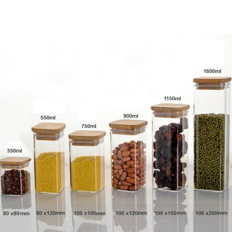 The jars are made of 2-3mm thick glass, bamboo wood lid, silicone gasket.