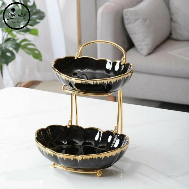 Khay Trái Cây Hoa Viền Vàng vân múi- 2 tầng