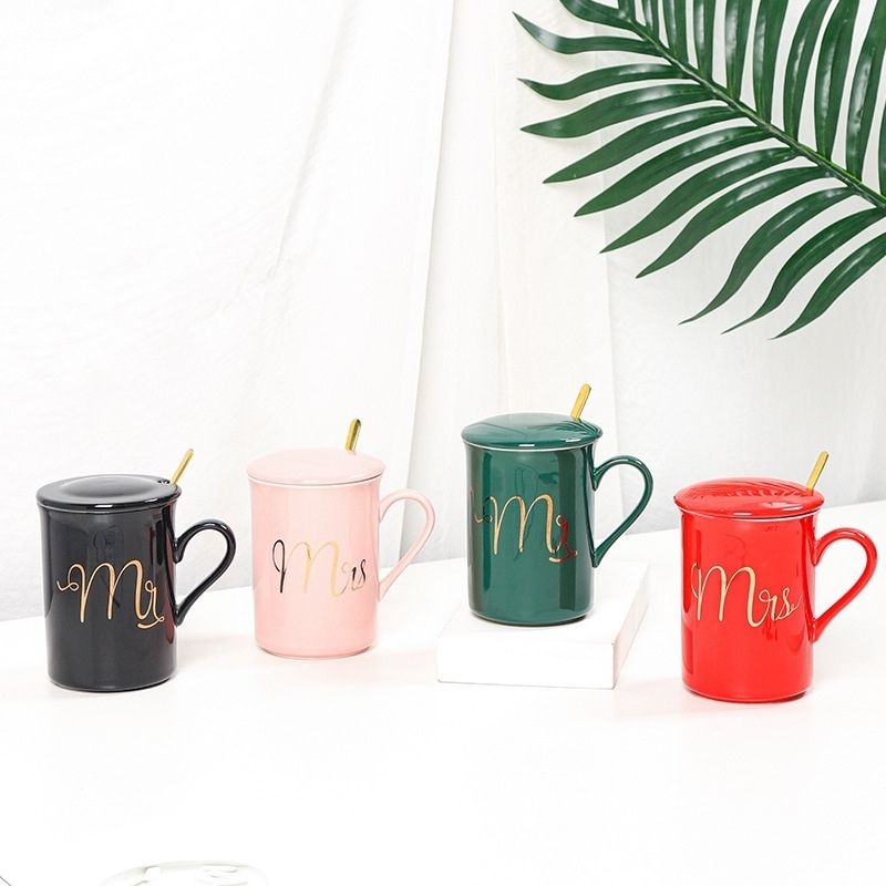 Ly sứ Mr&Mrs tay cầm vàng