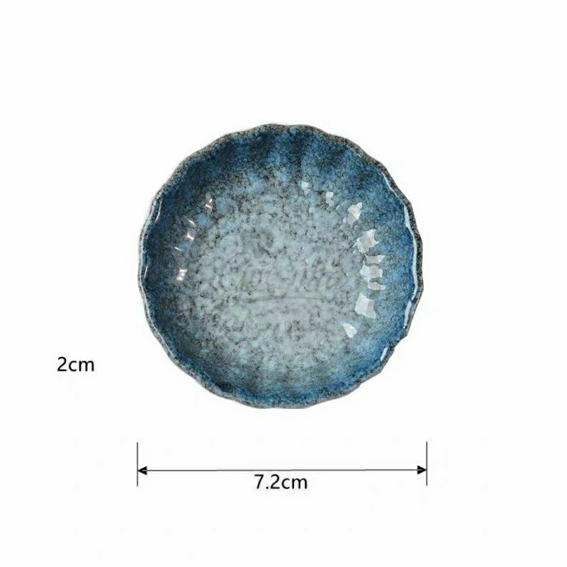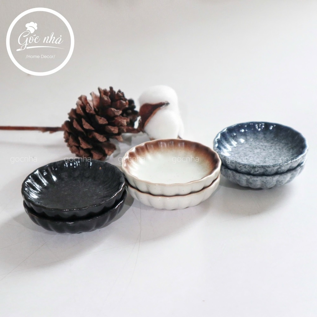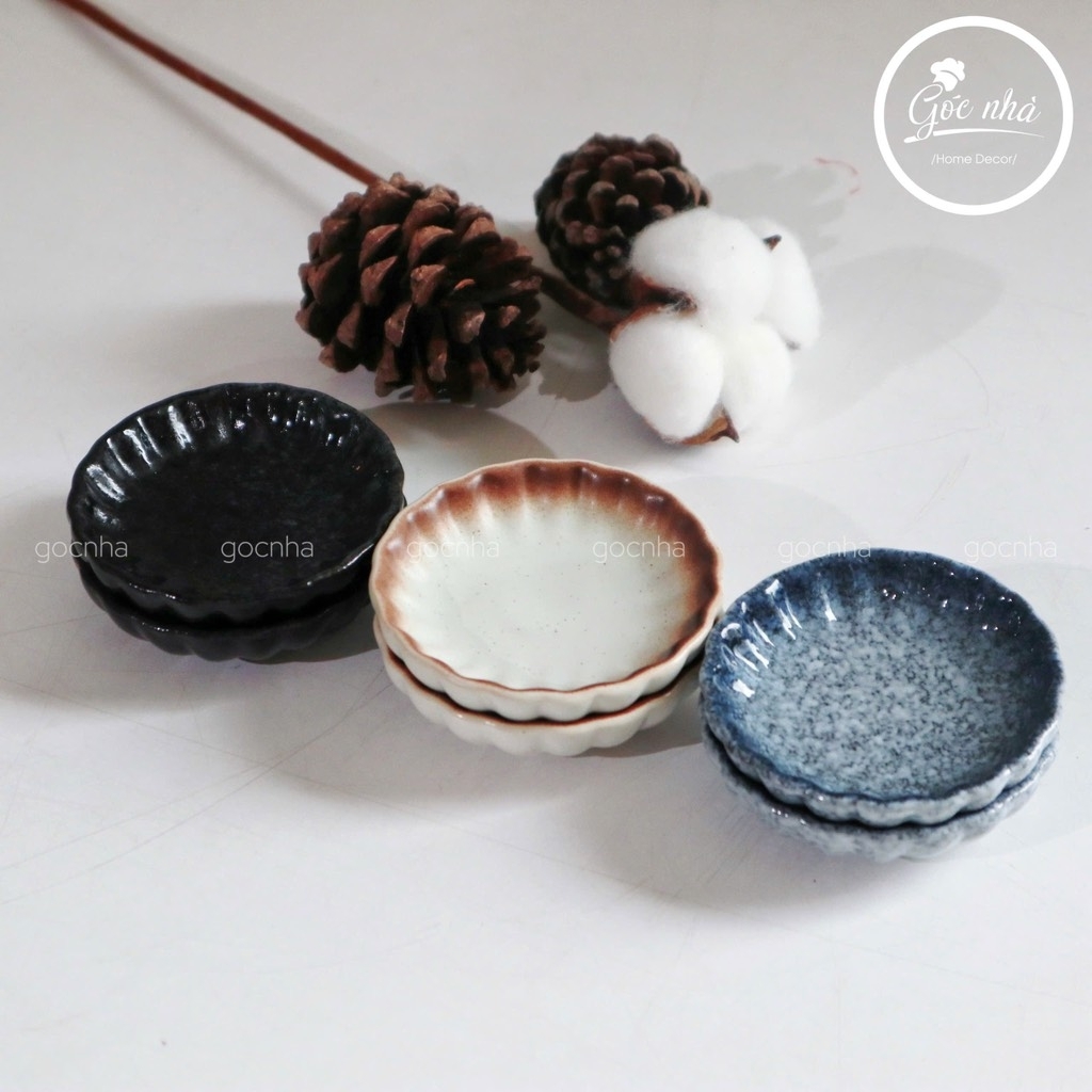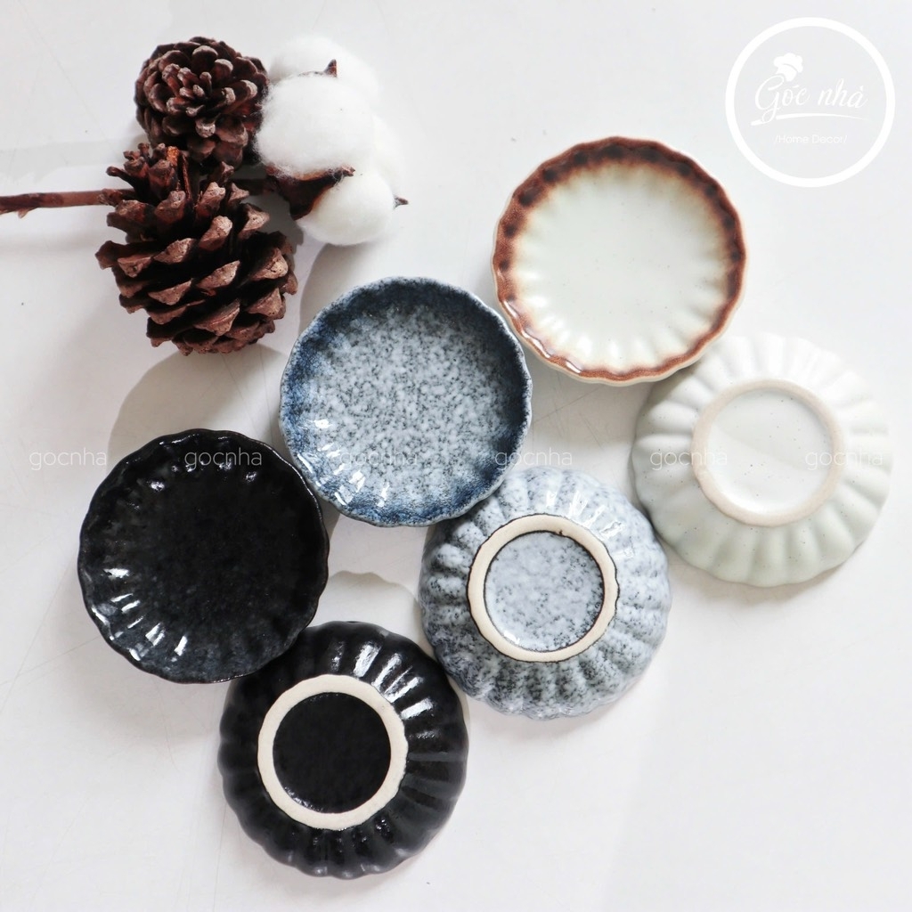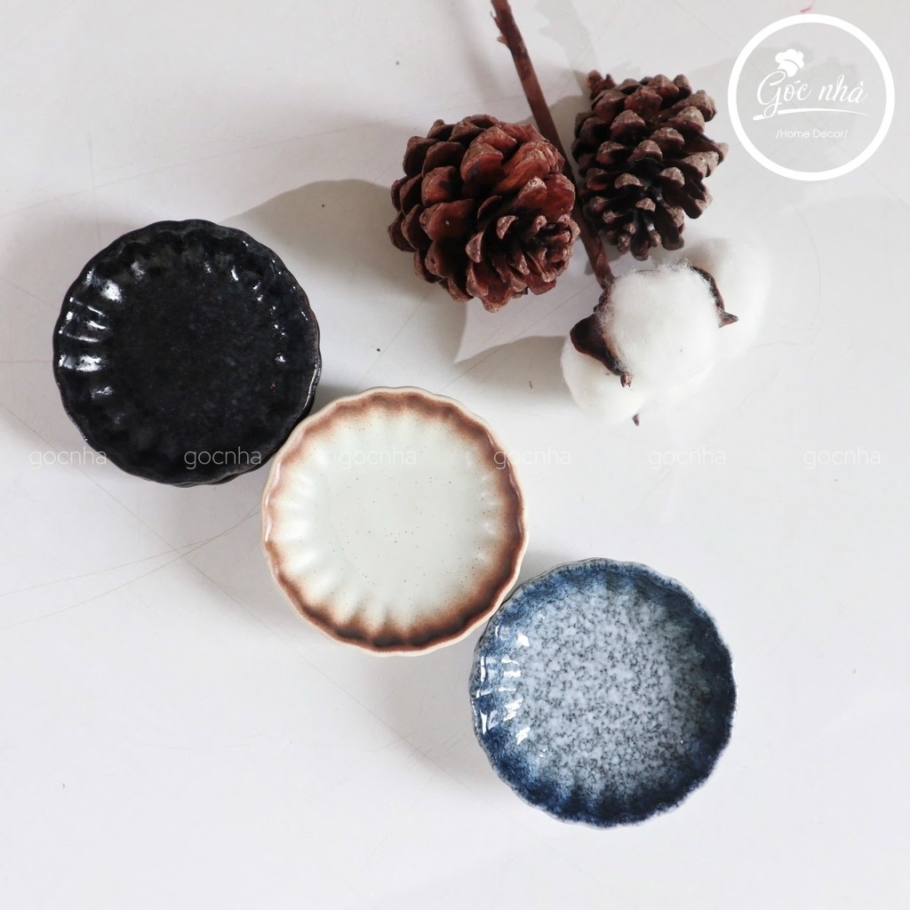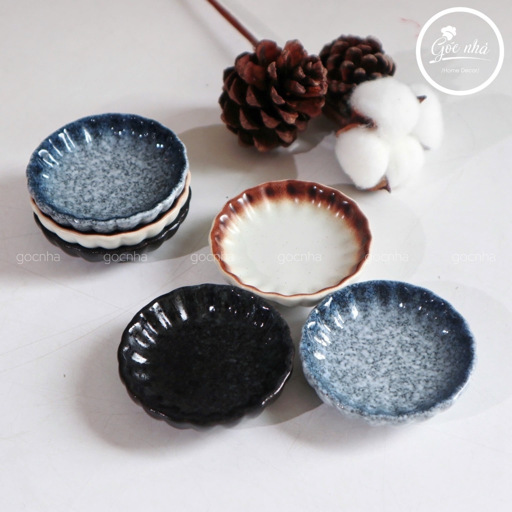 Lớp men loang ngẫu hứng với các gam màu trầm ấm như xanh indigo, đen tuyền hay trắng sữa tạo nên hiệu ứng thị giác cuốn hút, vừa mộc mạc vừa hiện đại. Dưới ánh sáng, bề mặt men phản chiếu tinh tế, giúp tôn lên màu sắc tươi ngon của gia vị, nước chấm hay các món ăn kèm nhỏ xinh.