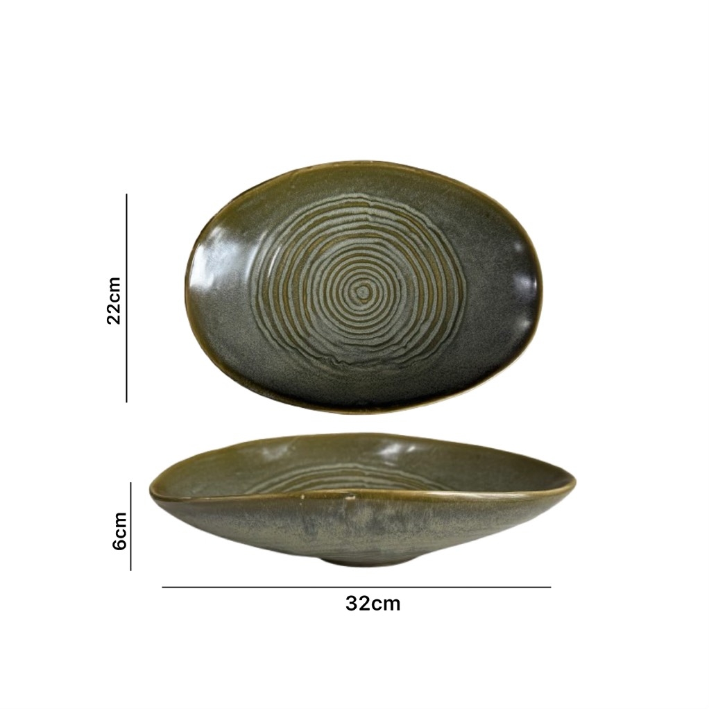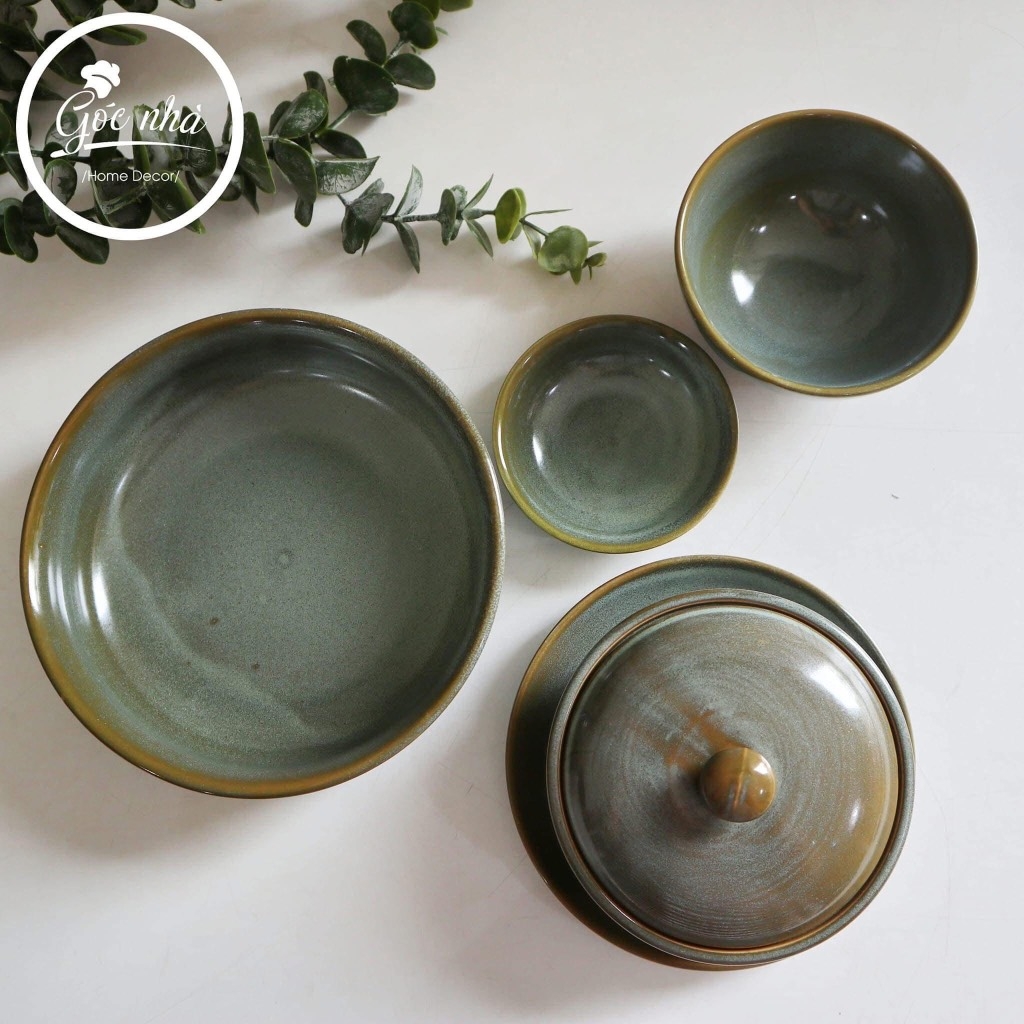 Gam xanh ngọc lục bảo chuyển sắc sâu thẳm, gợi liên tưởng đến rừng cây cổ kính hay bầu trời u ám của nước Anh – vừa huyền bí, vừa thanh lịch. Các đường viền được xử lý tự nhiên, tạo cảm giác mềm mại và gần gũi, phù hợp cho mọi phong cách trang trí bàn ăn từ rustic đến contemporary.