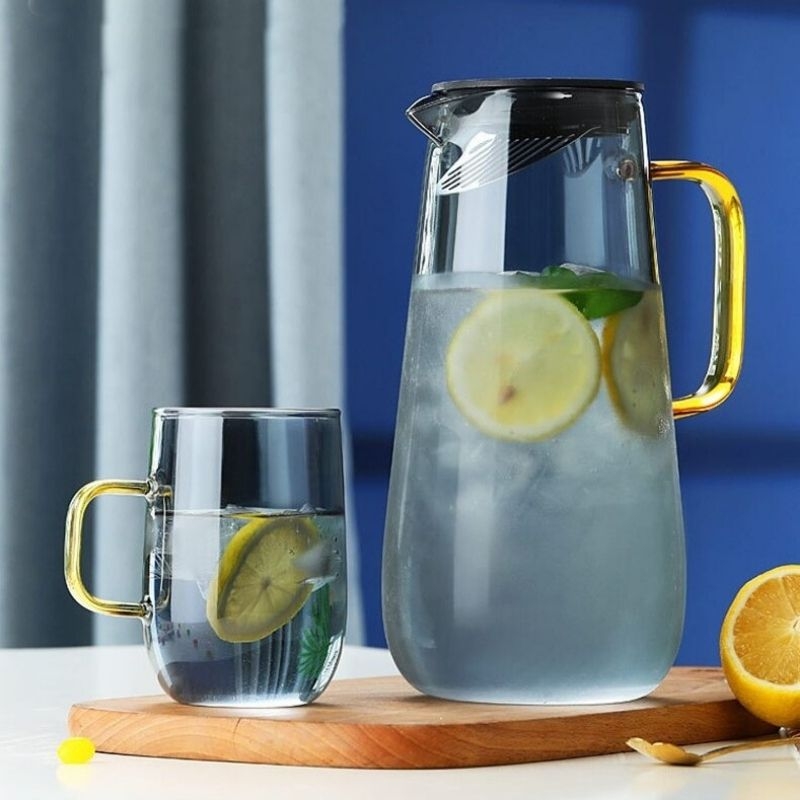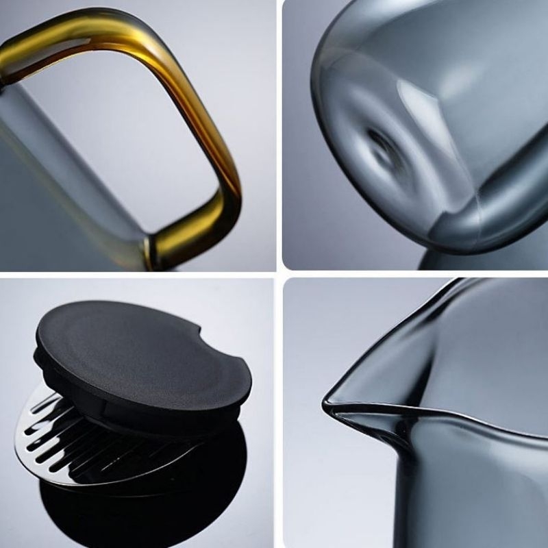 Set bình thủy tinh Xám Khói - Gồm: 1 bình + 6 ly + giá up ly và khay thép không gỉ phun sơn tĩnh điện
