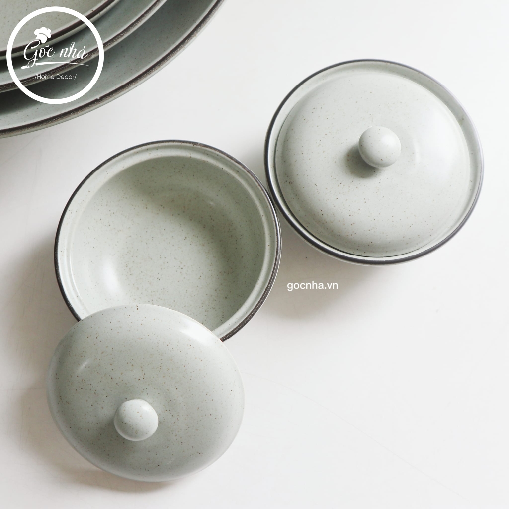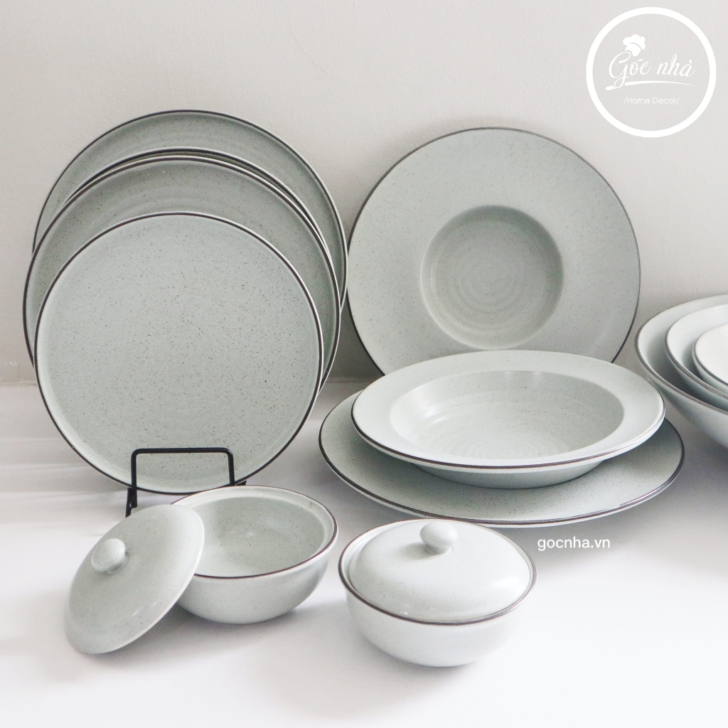 Bộ sản phẩm bao gồm đĩa phẳng, đĩa soup, bát cơm, thố lớn nhỏ và chén có nắp, giúp phục vụ đầy đủ mọi món ăn trong bữa cơm gia đình. Không chỉ đáp ứng nhu cầu sử dụng hàng ngày, set chén bát men tiêu ghi còn là lựa chọn lý tưởng để làm quà tặng tân gia hoặc dùng cho nhà hàng, homestay cao cấp.
