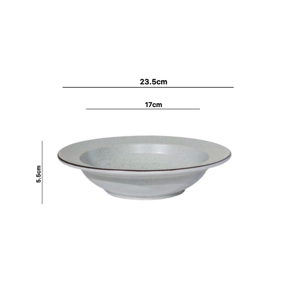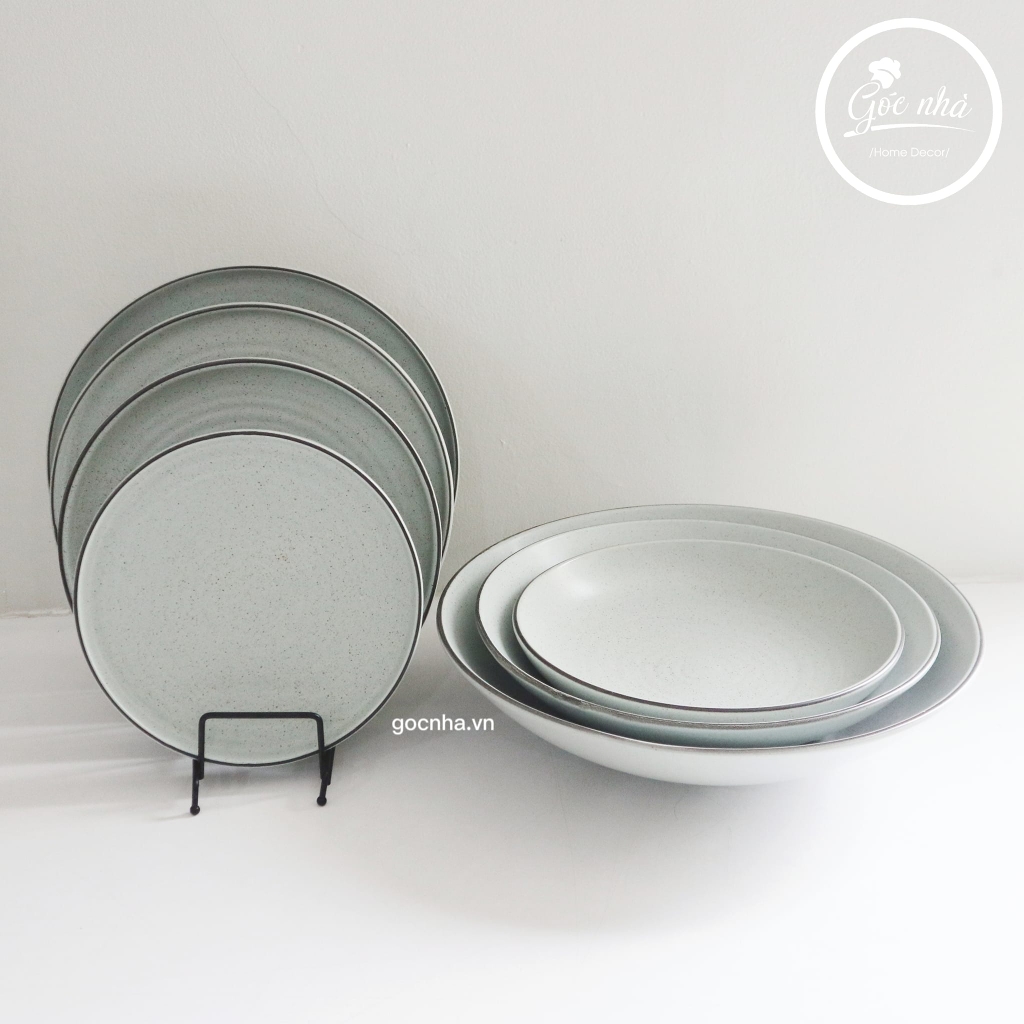 Set chén bát men tiêu ghi xanh đá là sự kết hợp hài hòa giữa thiết kế tối giản và kỹ thuật men hỏa biến cao cấp, mang đến vẻ đẹp trầm lặng nhưng đầy sức hút cho bàn ăn mỗi ngày. Sản phẩm nổi bật với sắc xanh ghi nhạt pha xám – gam màu trung tính, sang trọng, dễ phối hợp cùng nhiều phong cách bàn tiệc, từ hiện đại đến truyền thống.