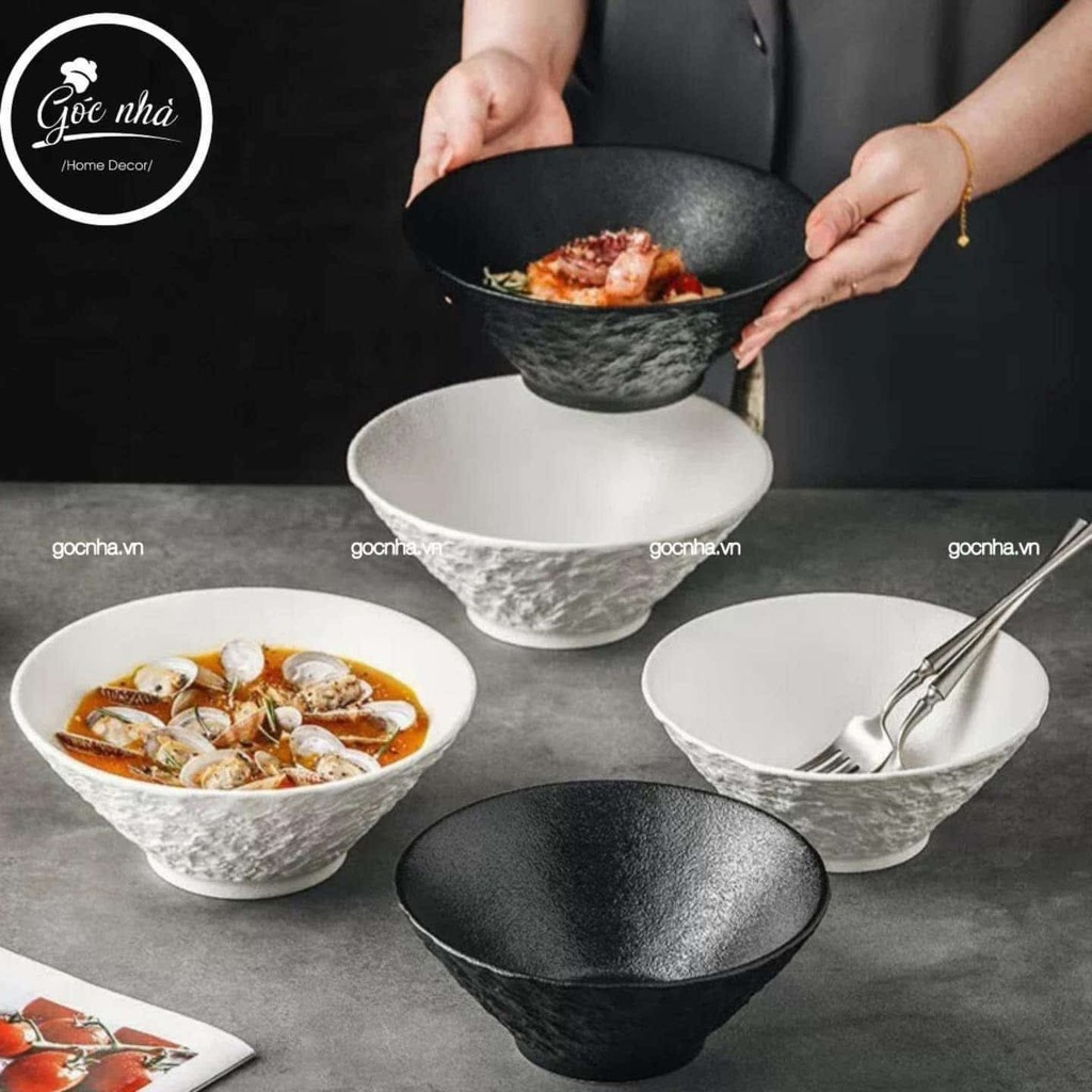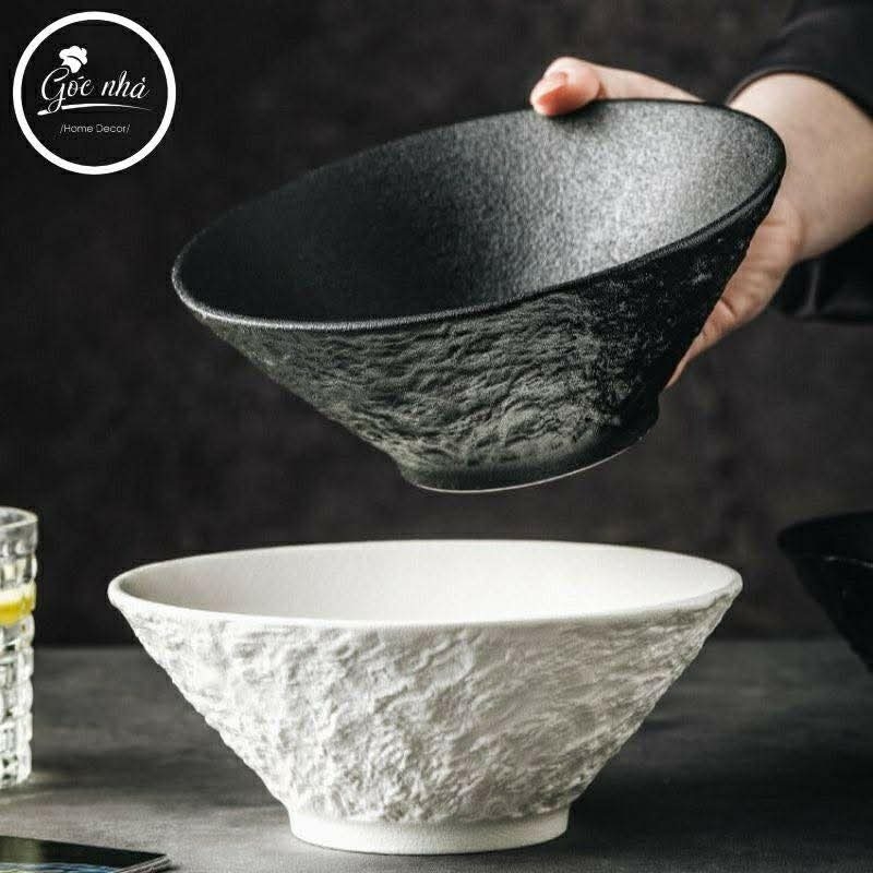 Tô nón LAVA vân sần gây ấn tượng mạnh mẽ với thiết kế dáng và bề mặt vân sần độc đáo mô phỏng nham thạch tự nhiên. Sự kết hợp giữa kiểu dáng hiện đại và tông màu tối giản đen - trắng giúp sản phẩm phù hợp cho cả phong cách ẩm thực truyền thống lẫn hiện đại.